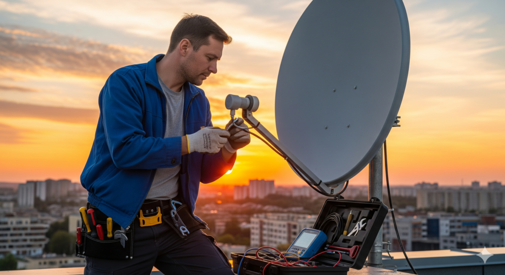 - Diagnose en reparatie: Wij sporen de oorzaak van de storing op en repareren deze ter plekke. Denk aan het opnieuw uitrichten van de schotel, het vervangen van defecte onderdelen (LNB’s, kabels) of het resetten en opnieuw instellen van de satellietontvanger.